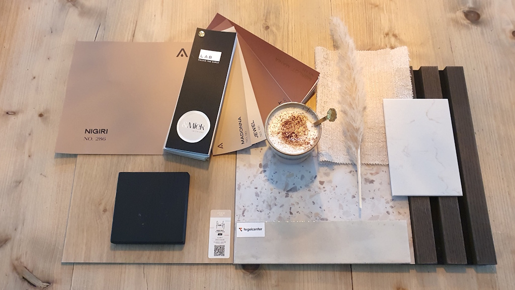 Het hele proces was zeer compleet. Na de intake kregen we eerst een moodboard en daarna een volledig uitgewerkt voorstel. Zelf 3 verschillende richtingen om uit te kiezen. Wat ik bijzonder leuk vond, was het doosje met allerlei stalen die we ontvingen. De producten die ze voorstelt zijn mooi en duurzaam, zonder dat het allemaal te duur is. In het boek met voorstellen zaten ook linkjes naar webshops, soms met leuke kortingen, zodat je direct kunt bestellen.